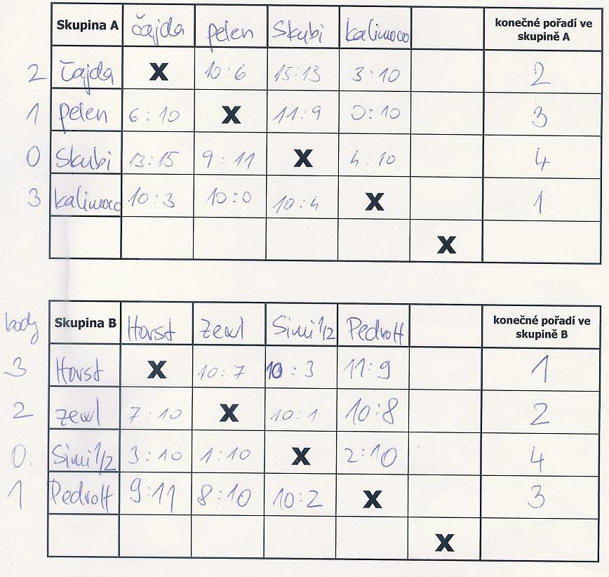 rozlosovani do skupin i s vysledky: finalove dvojice: ctyrhry: