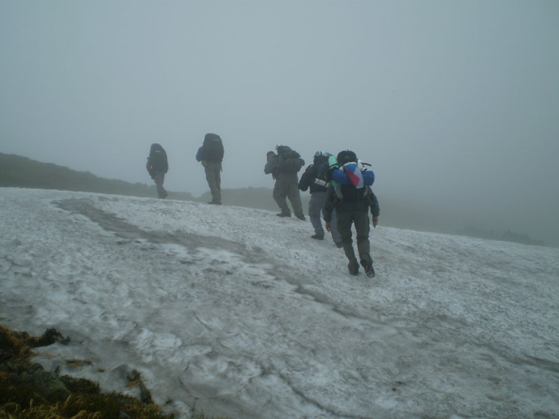 My jsme přešli ten černohorský hřeben...Den příjezdu jsme chtěli vylézt na hřeben,ale díky špatné orientaci jsme zůstali viset v těch neprostuipných klečích.Prostě jsme se blbci začali drápat přes ty houští,po kamenech na 30 st.svahu.Netušili jsme na kterou stranu je to nejlepší.Zvolili jsme radši lehký sestup a asi po 4 hodinách se dostali na trávu.Takže jsme našli rovinku a zakempili.Hřeben jsme teda osedlali až den další.Od černé hory jsme tedy mířili k Hoverle.Díky naší špatné mapě(něco jako autoatlas :-) )jsme se občas ztráceli a Hoverlu si pletli.Nakonec se to ale podařilo.Ten výstup na ní šel,ale sestup dal na kolena zabrat.Přeci jen ty bágly vážili kolem 20kg.Nejvíc naštvanej jsem byl z toho,jak jsem se vydrápal na Hoverlu v ponču,zabalenej do těch termoprádel a nahoře pobíhali děti v tričkách a sandálích.Měli jste to tam taky?Oni tam jezdí se školou z druhé strany a to je asi pohoda... :roll: Jinak skupin čechů jsme pár potkali.Jiný cizince jsem tam nezaznamenal...V Koločavě jsme nebyli a těch hospod na zakalení jsme moc nenavštívili.Většina času byla strávená na hřebenech bez lidí...Bylo o pěkný.Kouknu ještě na nějaký fotky,že bych je sem dal pokud by byl zájem a zvědavost :D
