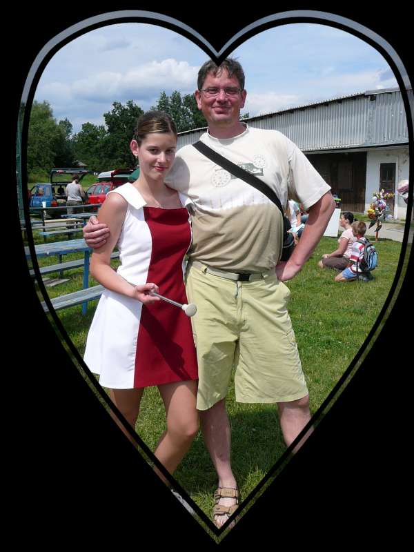 -ta fotka je z letošního roku, v červnu u nás byla přehlídka mažoretek, tak jsem se s taťkou vyfotila a trošku to upravila...
