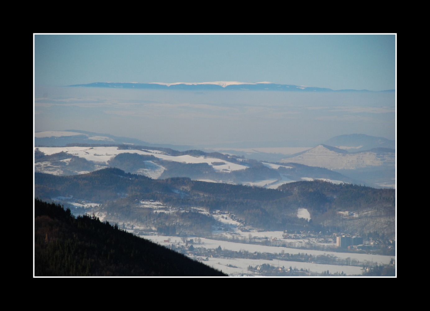 Nádherný rozhled od Jeseníků, přes Lysou Horu až k Roháčům.