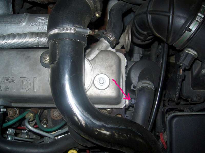 Tak normální to určitě není mě se teď začal točit ventilátor hned po nastartování, i když byl motor studený a točil se pořád. Příčinou bylo vadné čidlo teploty - u TDDI je umístěné na pravé straně hlavy válců při pohledu zepředu, hned pod čidlem tlaku oleje - je k němu celkem špatný přístup, musí se odmontovat olejové vedení a odlučovač oleje, od čidla vedou kablíky a konektor je právě u toho odlučovače, ten jde naštěstí lehce rozpojit a změřit stav senzoru. Měřil jsem odpor čidla a zjistil, že byl přerušený kablík. Nicméně ručička teploměru na palubovce fungovala normálně - nikde jsem se nedočetl jestli je tam někde ještě druhé čidlo, protože mě není jasné jak může ručička normálně ukazovat, když byl tento snímač nefunkční. Kdyby to někdo věděl tak by mě to zajímalo, odkud se berou hodnoty pro ukazatel teploty.