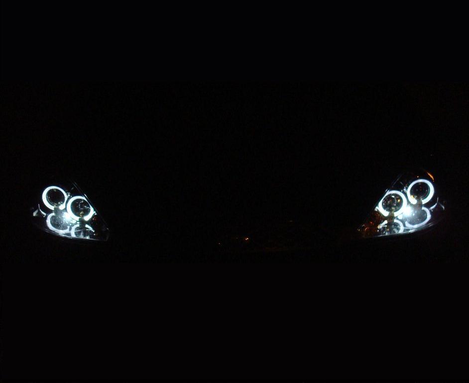 Čau, já osobně mám tyhle. Fotky jsem už vkládal někde na minulých stránkách, zde jsou znovu, ale je to na tobě, každé svítí trochu jinak. Kvalita bude v téhle cenové relaci téměř totožná. U těch co mám já svítí mimo klasická světla - kroužky a dioda, jako parkovačka, což si můžeš, či nemusíš zapojovat. U těch co máš na prvním odkaze je ve světle více diod a na druhém odkaze hned z prvu jsou světla lehce světelně zamračené, když svítí. Ty moje mají např. na :arrow: http://www.tuningshop.cz nyní za 3998,-. Ve tmě svítí, viz. obrázek. Jsem s nimi spokojen, nemlží se a plexi drží... :wink: