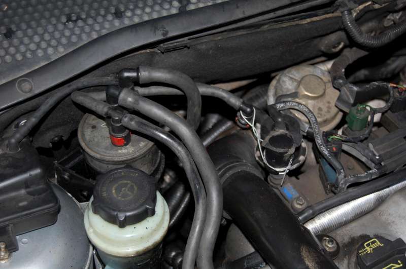 Neni to přímo po filtrem .Ale v tý mezeře u filtru .Když koukáš na motor,na levo jsou rozvody a mě přímo okolo nich vede hadička.Nevím jestli se až tak moc hnula.