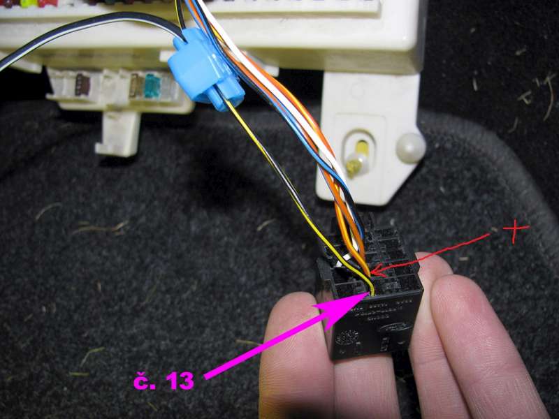 Podle návodu jsem propojil černo-bílý drátek (-) od žárovek se žluto-černým od stropního světla a pořád jsem nesvítil.