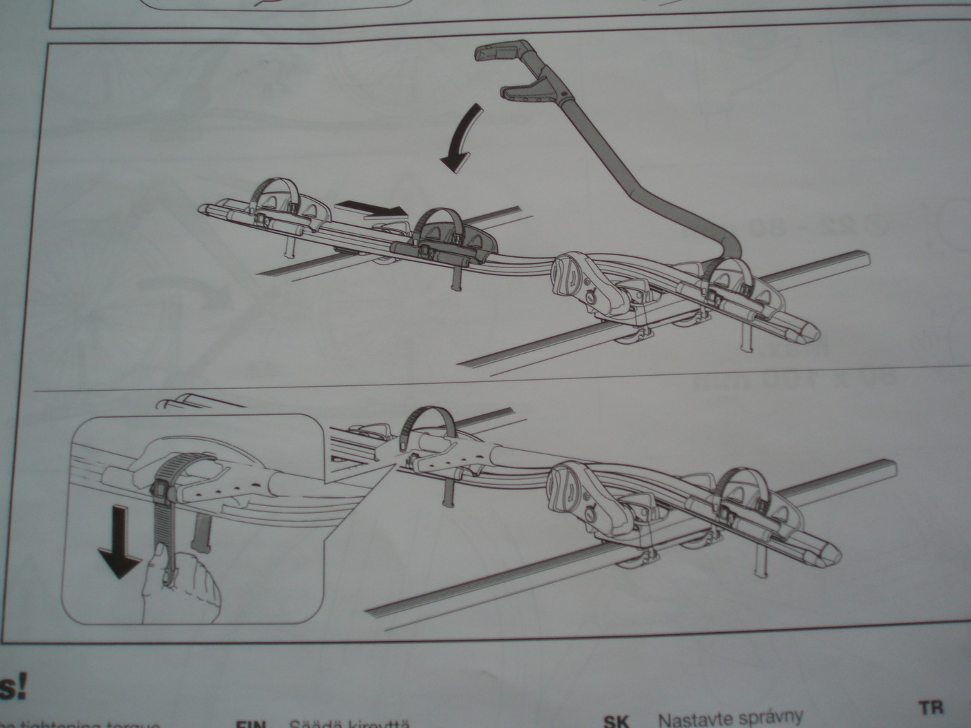 Tak jsem taky koupil dva kusy 591. Jsou super. Akorát mi řekněte, když máte nosiče na střeše, ale bez kol... Jak to děláte? Podle návodu se ten hák sklopí a přitáhne páskou na zadní kolo. Ale když ho sklopim tak je mimo a ne v té drážce jak ukazujou v návodu. Je v tom nějakej fígl?