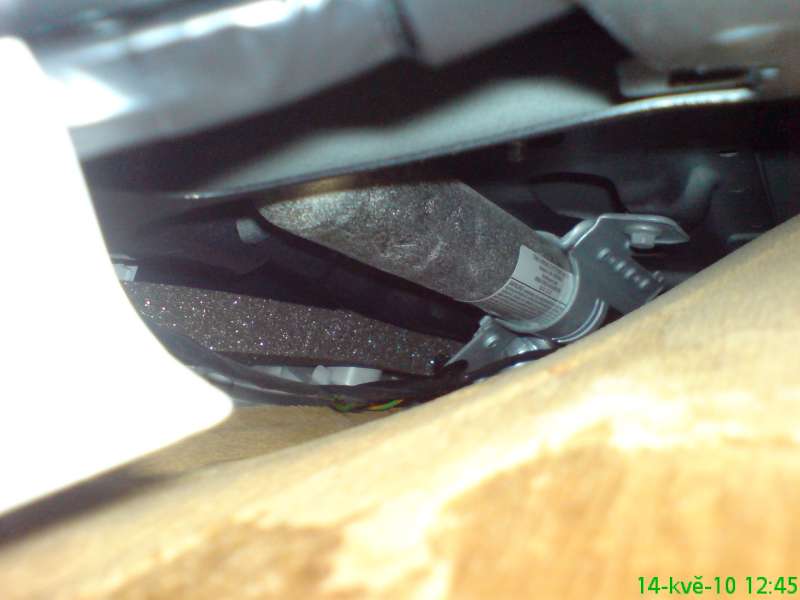 Obě dvě strany mokré. Musí to zatékat od ližin protože nejvíc to teče při pohybu auta. Nevíte někdo jak se ližiny sundávají? Ta bombička patří k airbagu?