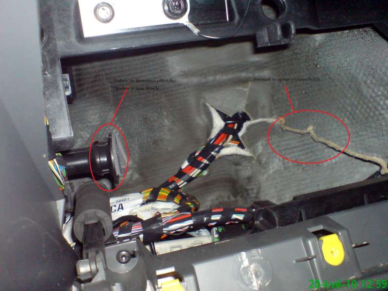 Obě dvě strany mokré. Musí to zatékat od ližin protože nejvíc to teče při pohybu auta. Nevíte někdo jak se ližiny sundávají? Ta bombička patří k airbagu?