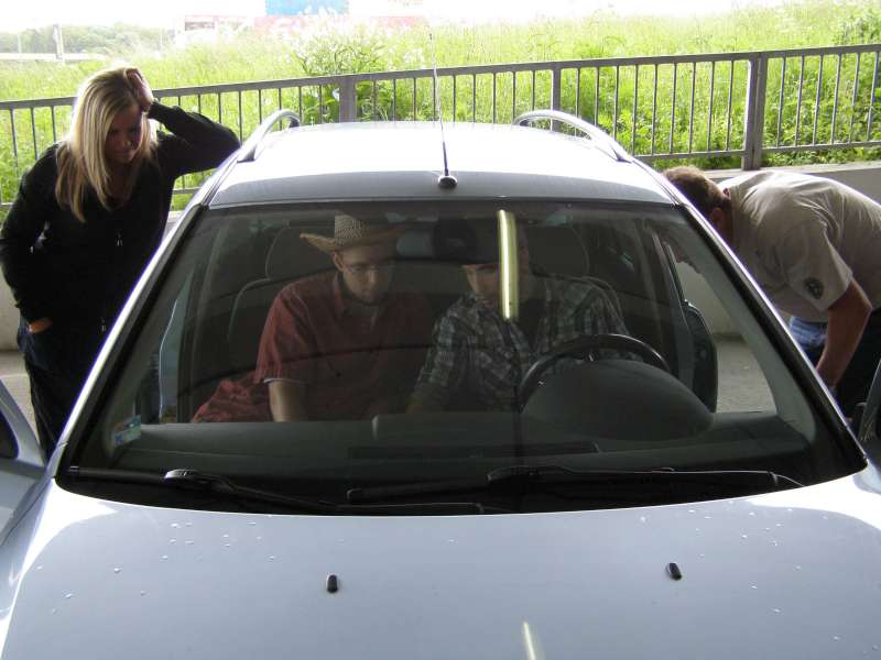 Sešli jsme se přesne ve 12:00. Tímto děkuji všem za dochvilnost. V garážích jsme fajn pokecali. Proběhlo i pár servisních prací na vozidlech. Například si rumcajs půjčil od zuzky anténu aby vyzkoušel ve svém autě GPS. Samozřejmě byla veliká sranda jako vždy.