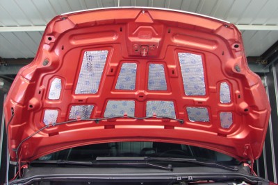 Tak jsem se konecne dostal k zatlumeni hluku motoru v kabine. Vybral jsem si STP Vibroplast M1 - 3 platy 30x40cm (cena cca 450,-). Vylepil jsem jimi prolisy na kapote, na kterou jsem pak vratil originalni deku od Fordu. Pak jsem jeste vylepil na prepazce motor/kabina ze strany motoru kazdy nahy plech co byl videt a v dosahu. Vse bez jakekoliv demontaze dilu. Prace na cca 1 hodinku.