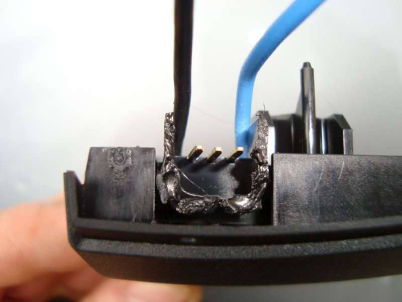 Původní ovládání jsem upravil (provedl jsem to pomocí pájky) a ty dvě dutiny jsem vyplnil epoxidovou pryskyřicí od Patexu (REPAIR EPOXY)