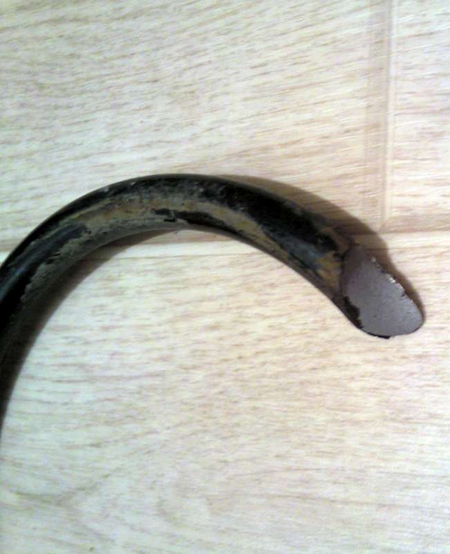 Dnes při jízdě jsem najednou zaslechla, jakoby mi z auta odpadl nějaký kus kovu a nebo bych na něj najela a trochu ho rozhýbala po silnici. Pro jistotu jsem couvla zpátky a na zemi našla takový železný kruh, který je na jedné straně evidentně ulomený. Nemám naprosto tušení, co by to mohlo být, tak se ptám, zda-li to náhodou někdo nepozná. Průměr celého kruhu je 15 cm. Ještě doplním, že kruh je trochu prohnutý, takže neleží celou plochou na zemi.