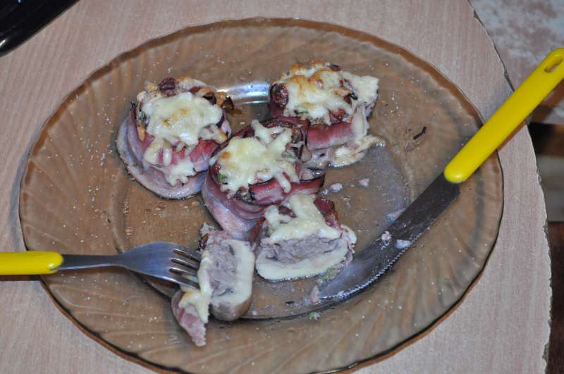 Drobek - to vypadá moc dobře! Těch variací na téma slanina-žampión je spousta a je to fakt jednoduchý, vděčný základ. Někdo tam třeba dává do žampiónu sušenou švestku. Tvojí variaci určitě vyzkouším