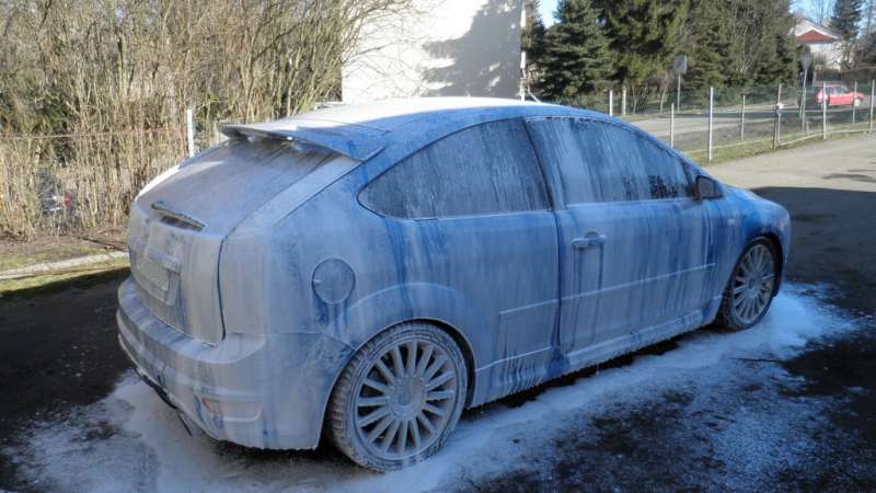 Chvíli mi trvalo, než sem si nastavil trysku, proto pěna není tak "hutná", jako na něterých fotkách z detailingových fór, přece jenom první pokus