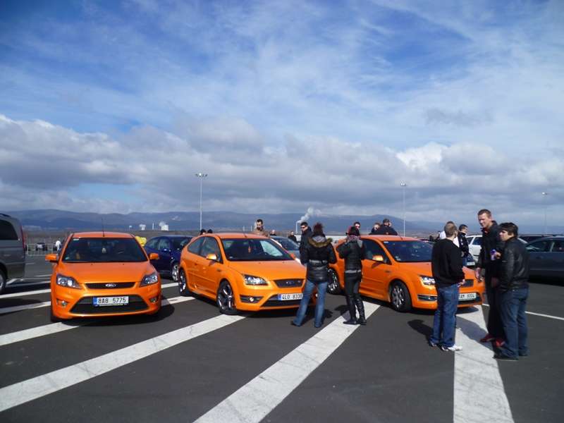 Ford Focus II 2.5T ST, 3 dv.,Electric Orange byl, je Golf GTI VII Performance Pack
