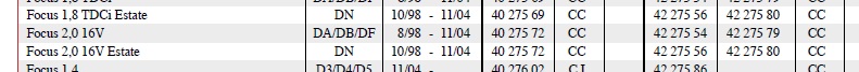 Skutečně, zakoupená pružina je typu CC a podle katalogu Lesjofors má být na všech Mondeích sedan vzadu typ II a na všech Turnierech CC.