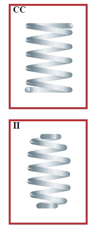 Označení přední pružiny pro Focus je 40 275 72 (40 zřejmě označuje že přijde na přední nápravu, je to u všech předních pružin) a označení zadní pružiny ST220 je 42 275 72. Což naznačuje, že by pružiny mohly být v něčem podobné. Nicméně pružina pro Focus je typu CC (viz obr.) a pružina pro ST je typu II (viz obr.). :?