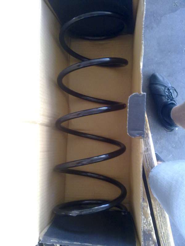 Rozhodl jsem se ještě osobně navštívit Ford Kačmáček v Praze na Kačerově a probrat to tam s nima. Tam zavolali svému dodavateli dílů z druhovýroby, který údajně byl schopný správné pružiny dodat do dalšího dne. Kývnul jsem na to tedy. Cena 1900Kč/kus. Ovšem pružiny které přišly mají na krabici napsáno, že jsou určeny pro Focus 1. generace, motorizace 1.8 - 2.0i, na přední nápravu. I pánovi z Kačmáčka to přišlo divné, ale na výslovný dotaz ho prý dodavatel ujišťoval, že pasují na STčko na zadní nápravu. Že to tedy prý mám zkusit a když to nepůjde, tak jim je mám vrátit.
