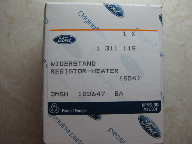 Nový rezistor ventylátoru zakoupen origoš u FORDU v Uherském Hradišti,z vrakáče ze Slavkova u Brna chtěli za něj 460,- se 14 dení zárukou