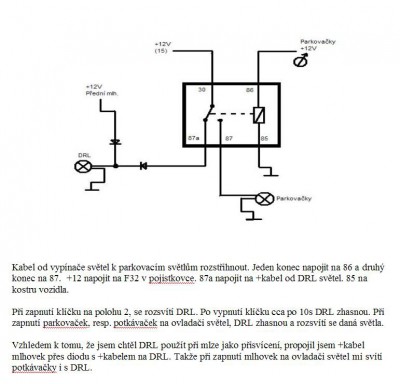 - ostatni zapojis tak jak mas v navodu, jen Ti zbude prazdny pin 87 (nebo si poridis rozpinaci rele, ktere tento pin nema)