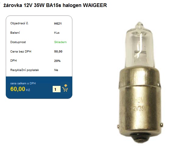Prosím o zaslání 2 kusů: 901191 796 12,8V 35W BA15s 48049 149,50 bez DPH/1ks