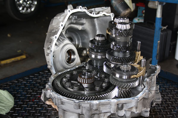 Par foteček rozebrané převodovky při výměně diferáku. Sám doma v garáži bych to asi nedělal.