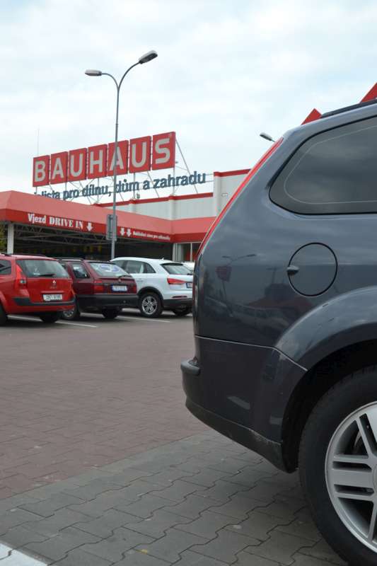 Sraz byl u Bauhausu, kde jsme doladili pár posledních chybějících maličkostí jako krycí pásky, rozstřikovač apod. Následoval přejezd do mycích boxů v KrPoli. Po domluvě najíždíme do boxů a já si spolu z mohutným zvukem škrábu spodní lem nárazníku o místní (z)propadenou vozovku (z auta důlek nebyl vidět). Nevadí, je to spodek a není to vidět