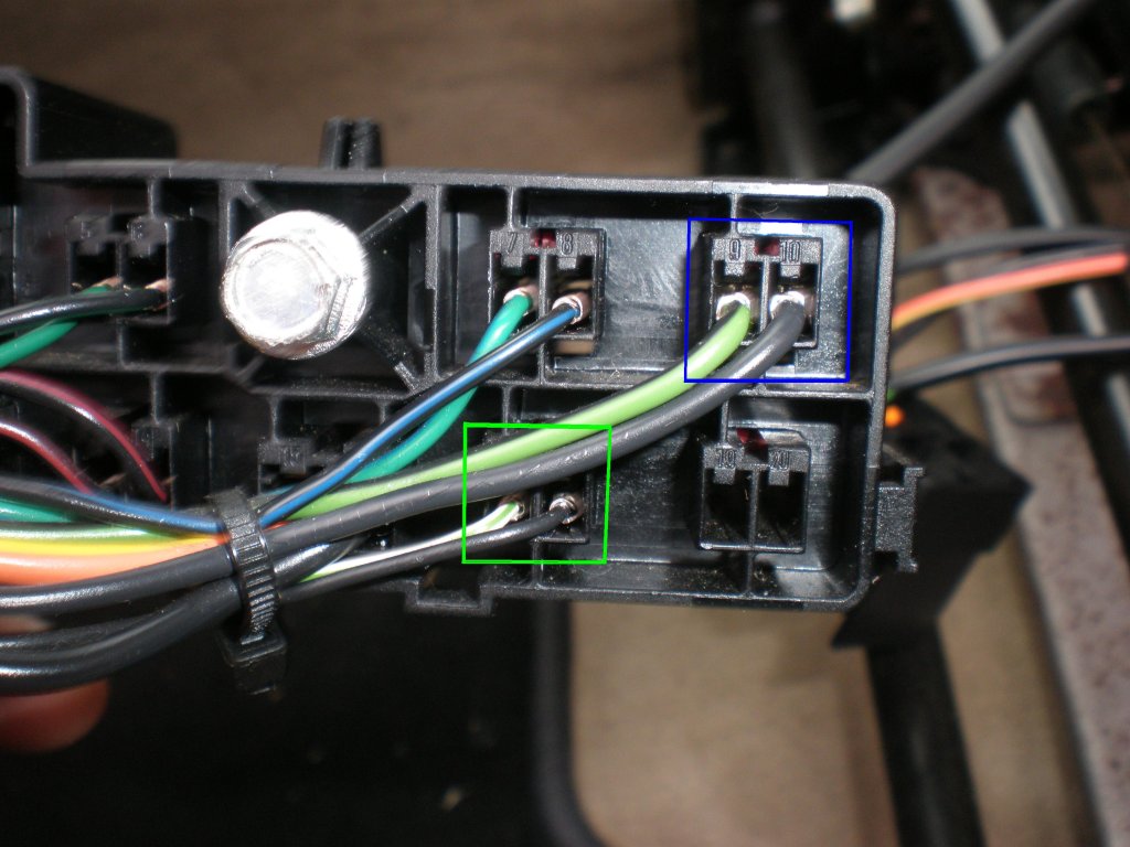 Podle schématu je silová část zelenej od plusu za relátkem do krabičky a pak červenej z krabičky do výhřevu sedáku seriově s výhřevem opěradla a zpět do krabičky černej. Bílej by měl jít od spínačů, černý s proužkama by měly být k termistoru.