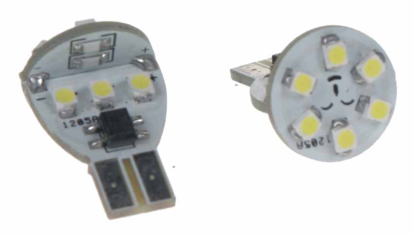 přidám svoje řešení, použité ledky jsou na druhém obrázku. Svítí to dobře, minimálně stejně jako klasické 5W5 žárovky a zároveň se nejedná o modré (cold) světlo.