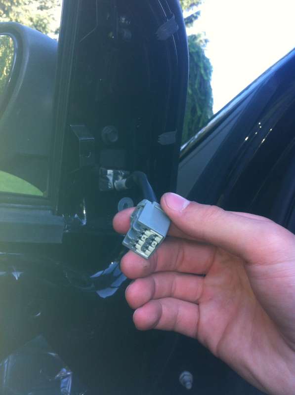 Koukni na svorkovnici na svazku co jde z auta na pin. č.6(zelenočerný kablik). Jestli ho tam máš tak by to mělo být připojený na to. Pin 5(černý) je uzemnění. Zrcátko u řidiče! U spolujezdce nevím jestli je označení stejný.