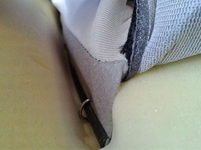 9) Upravíme dečku a přiděláme k sedáku (zde si myslím není ani potřeba dečku nijak připevňovat nebo lepit, potah totiž dečku spolu s přiděláním potahu dokonale přimáčkne). Pro jistotu jsem ale na několika místech použil klasickou kobercovku.