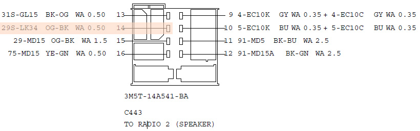 Podsvícení rádia by má podle schémat nastarosti pin konektoru C443 14 (oranžovo-černý drát s průřezem 0,5).. Z těch černo-oranžových a oranžovo-černých je to opravdu ten prostřední..
