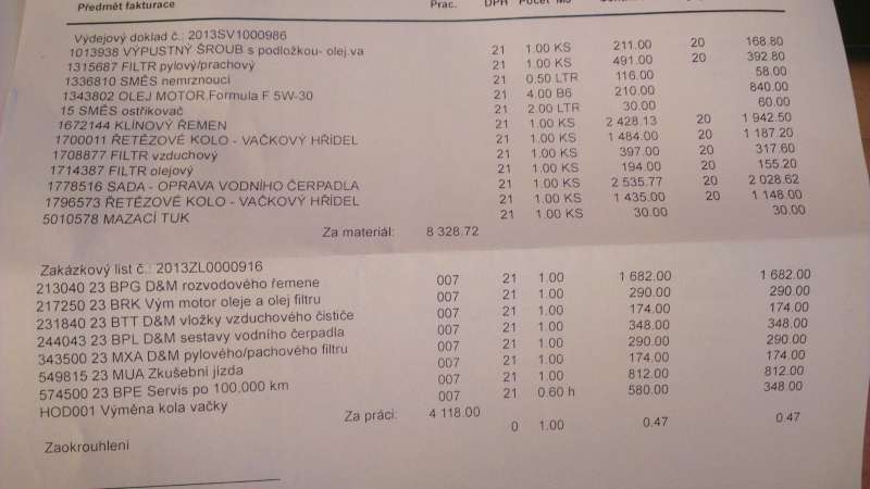 tak mám hotovou jarní prohlídku včetně náplní a filtrů + rozvody vč. pumpy + vct mechaniku. Motor má jasně klidnější, hladší a tišší chod.foki píše:Miri píše:Tak mi odepsali od Meiera a cenově to vychází takto:
