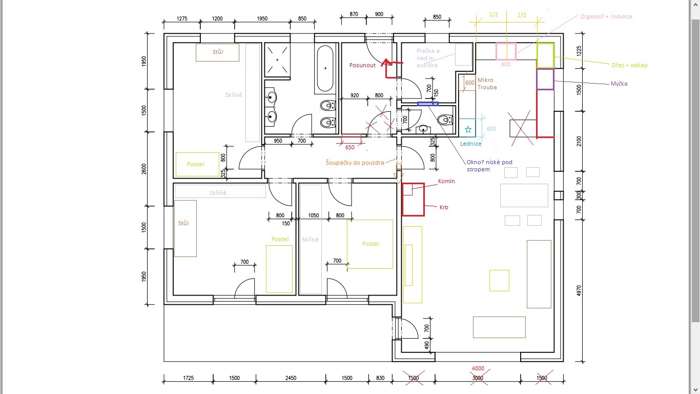 Tak jsme se trochu zase posunuli s tim půdorysem. Máte k tomu někdo něco? Já nějaký připomínky mám, ale nebudu Vás navádět
