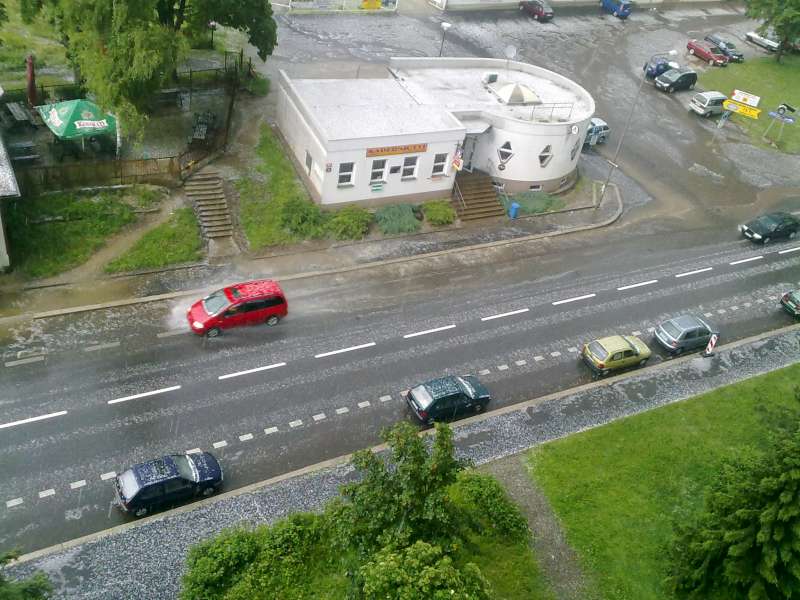 V Jablonci od 16 hod bouří a teprve teď začaly padat kroupy,a slušně leje