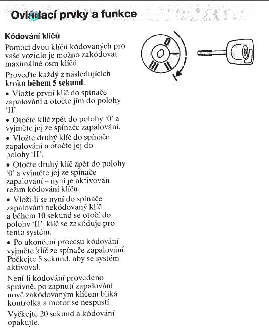 Pokud máš jeden naprogramovanej a druhej koupenej. Musíš do servisu. Děláse to přez komp. Oba klíče se přeprogramují včetně řídící jednotky.
