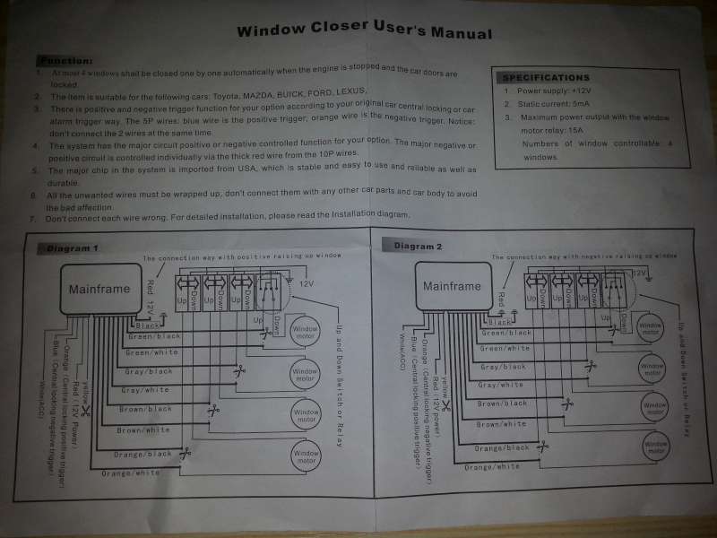 zapojeni nebude tak snadne jako je obrazek, protoze draty musis dotahnout az k motorkum oken (tj. az do dveri); motorek ma 2 piny, tak si vyzkousej, kdy pojede nahoru a kdy dolu