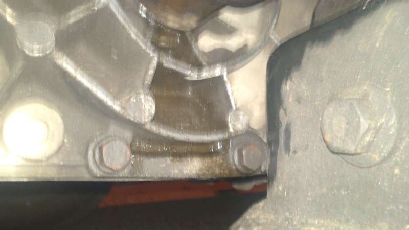 Nejdřív jsem si myslel, že je to z manžety a že praskla - byla taky zasraná jak jetel, očistil jsem ji a je furt čistá, ale olej na bloku motoru se drží furt, ať čistím sebe víc. Zdá se mi, že to protéká v tom místě, kde poloosa "zalézá" do motoru - za manžetou z pohledu od kola.