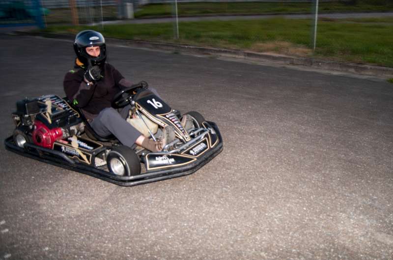 Kdybysme jeli jen 4, tak by to byla nejspíš nuda, protože trať je velká a vůbec bysme se nepotkali. Jediný, co mi vadilo, bylo, že motokára vůbec nebrzdila. Proto nechápu Stehnakovo zděšení nad tím, že to brzdí zádníma kolama, protože já si to neměl jak ověřit.