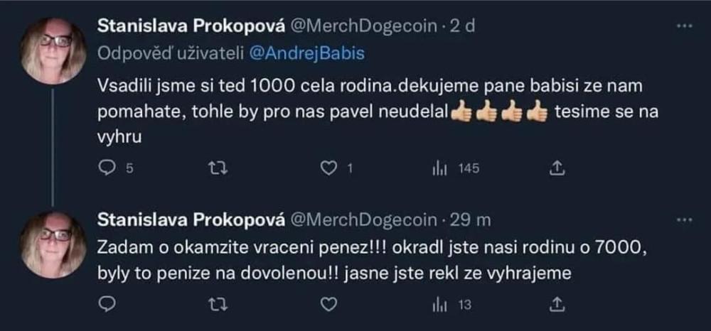Myslel jsem to tak, že fejk nebo troll je ta Stanislava Prokopová.stano. píše: 29.01.2023 09:39Fejk? Mas falosnu mienku o urovni naroda.pkadecka píše: 28.01.2023 22:05 On to je asi fejk, resp. trolling, ale určitě na Babišovu radu dalo spousta dezolátů... A teď pláčou...