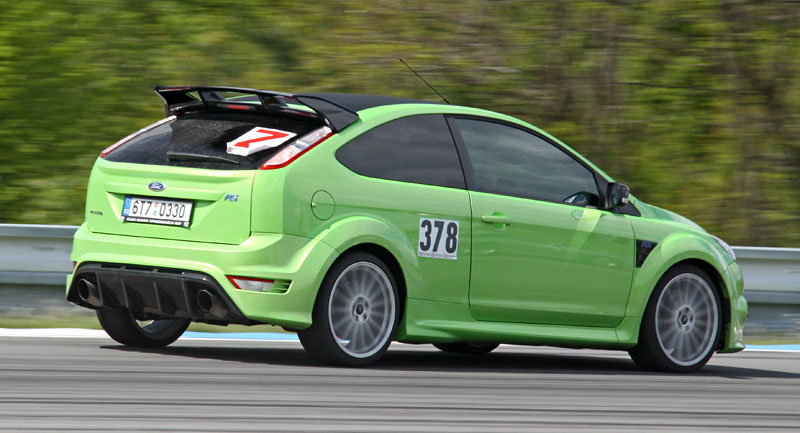 Ford Focus II 2.5T ST, 3 dv.,Electric Orange byl, je Golf GTI VII Performance Pack