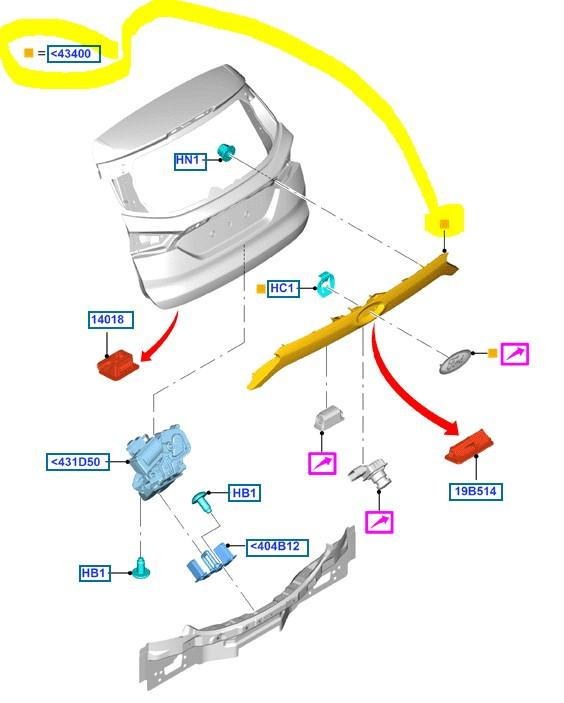 Co se týče černého plastu nad SPZ do kterého se vkládá kamera, tak tento díl není možné ve Fordu zakoupit samostatně. Ford nabízí pouze sestavu jako komplet pod číslem 5343039. Jedná se o díl, který je mezi světli se znakem Ford uprostřed. Je to ale dost peněz za to, že potřebujete pouze spodní černý plast ve verzi s kamerou. Já jsem zakoupil použitý díl (celek – barvu řešit nemusíte) , ze kterého jsem černý plast demontoval a vyměnil ho za můj původní. Vše je totožné jako původní plast, pouze ten nový má prostor pro danou kameru. Je nutné díl jako komplet demontovat a vyměnit černý plast + nacvaknout kameru a zapojit nový malý kabelový svazek. Dli je uchycen k pátým dveřím pomoci šesti matic (klíč 10) + dvě bíle plastové spony.