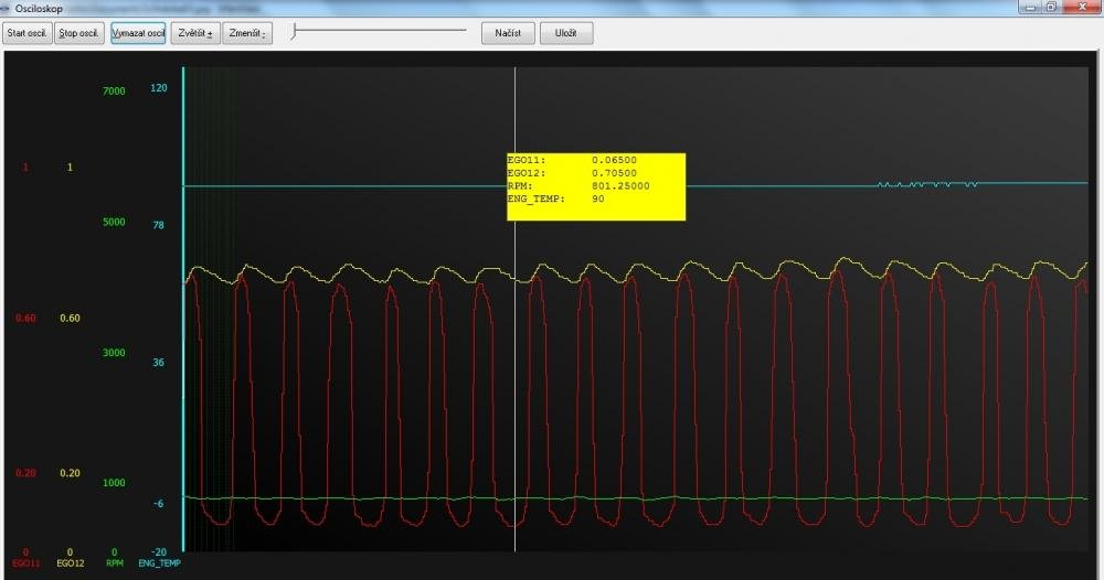 Tvé grafy jsem už viděl, pidy EGO11 a EGO12 tam nemám. Sondy jsou jiné, první má 5 drátů, druhá 4. Na FFII jsou zřejmě stejné, mají i stejné konektory. Na FFII jsem kdysi jednu sondu měnil, měla chvilkové výpadky měření a motor občas padal do nouzáku.
