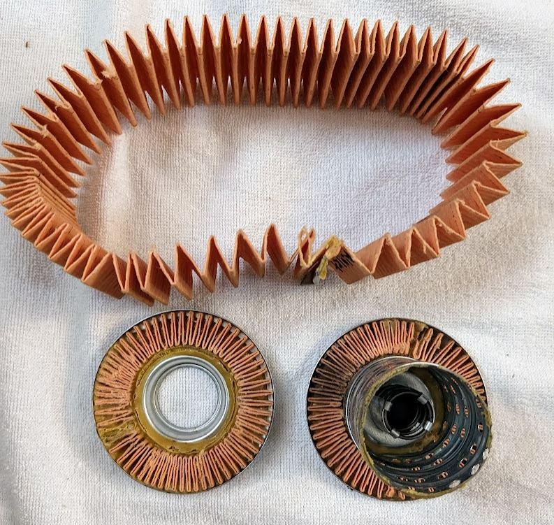 Ze všech filtrů se Bosch, resp. jeho výrobce Purflux absolutně vymyká velikostí filtračního média. Sklady jsou mnohem větší (trubička uvnitř filtru menší) a navíc na výšku seskládané do VVV (viz příspěvky výše - zde kopíruji fotku z prvnotního zkoumání)