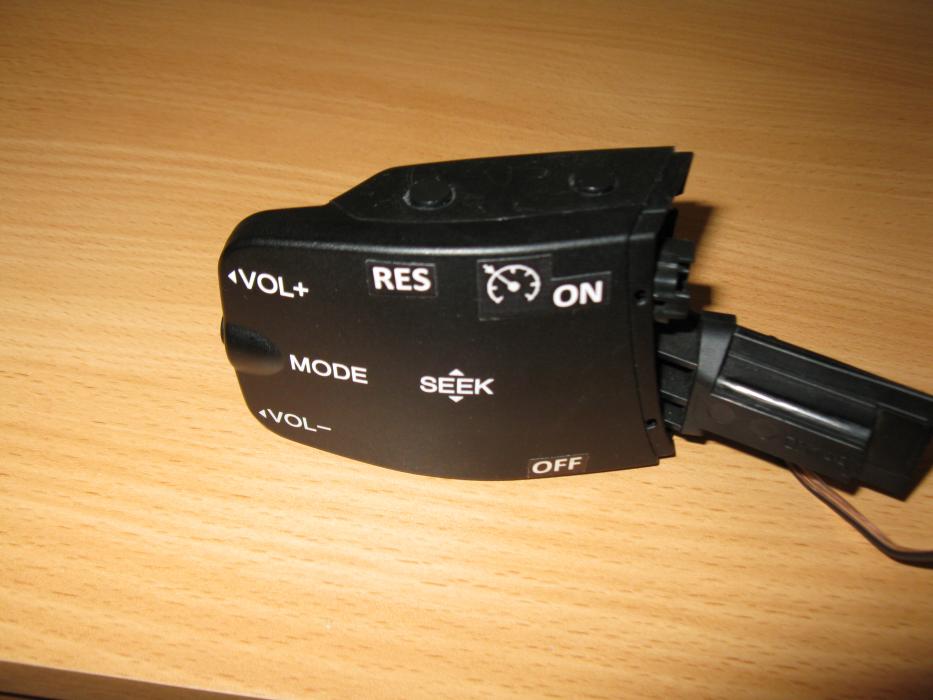 Já mám tento typ volantu a volil jsem tlačítka na ovladači rádia. Z mé krátkodobé zkušenosti mohu doporučit napojit ON tlačítko na relé, které sepne hned po startu a pak už jen dát tlačítka +/- a možná RES, ale to používám minimálně. http://1drv.ms/1KGUaJ1
