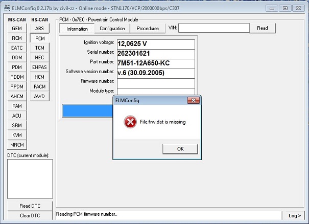 mozna je problem v tom, ze je modul predFL a auto poFL a modul nenajde tlacitko na vypinani ESP (fw v modulu jeste neumoznuje vypinani pres palubak)