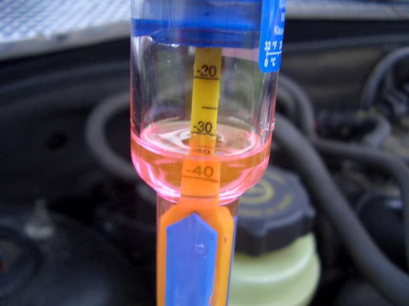 Tak som dnes skocil do servisu, ze kupim chladiacu kvapalinu, chlapik povedal, ze ale najprv skusme zmerat, ci nebude stacit len zriedit destilkou... a meradlo ukazalo -43 stupnov, tak som tam dolial 1-2 deci destilovanej a mam zatial pokoj...