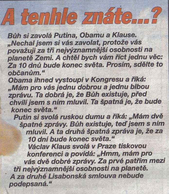 "Mám pro tebe dvě zprávy, jednu dobrou a druhou špatnou.