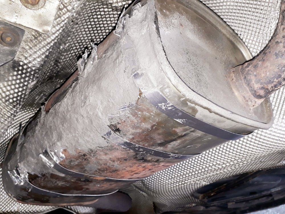 1. Povolil spoj medzi DPF a vlnovcom. Od tohto momentu je vsetko dalej poskoditelne, kedze ide z auta von.