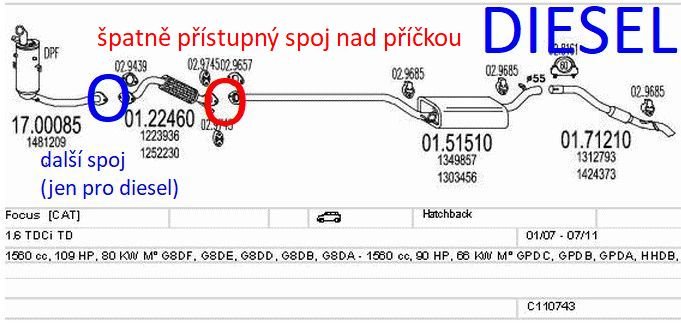 Teraz som prave zhadzoval z kombika. Ak sa ti podari rozpojit vyfuk medzi vlnovcom a DPF, mas vyhrane. Dalsi spoj je nad spominanou prieckou, tam sa da tazko dostat s klucami, nebodaj razovym utahovakom, kvoli priecke. Potom az po koncovku vyfuku je to jeden kus.