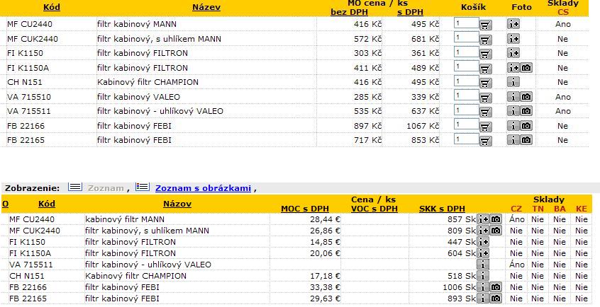 Ten Valeo (uhlíkový) z autokelly za 22 € v Česku za 637,-Kč je srovnatelný s tím pachovým+ co je v tvém letáku za 1488,-Sk. Valeo pachový z autokely za 339,-Kč (cca 12,50€ ) je podobný tomu pachovému Ford za 28,50 €.